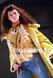 模特二十五日晚在北京舉行的中國國際時裝周上展示做工精美、設(shè)計獨特的2003香港新款皮草時裝。毛建軍 攝