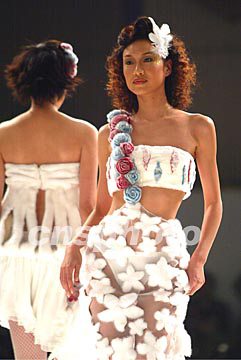 香港皮草服飾二十五日晚在北京舉行的中國國際時(shí)裝周上亮相,模特展示設(shè)計(jì)考究、做工精美的2003香港新款皮草。作者:毛建軍