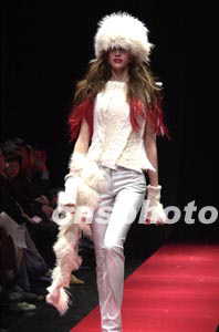 二00三年?yáng)|京秋冬時(shí)裝展二十六日晚拉開帷幕,在近一個(gè)月的展期中,日本時(shí)裝設(shè)計(jì)師們將發(fā)表五十多個(gè)品牌的新作品。圖為設(shè)計(jì)師白浜利司子二十六日晚率先發(fā)表她的羊毛作品。作者:陶光雄