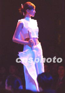 瑞典學(xué)生薩拉的時裝作品《冰將融化》,以山風(fēng)花香的簡潔意境獲得三月北京國際青年時裝設(shè)計師大賽的最佳材料獎和銀獎。作者:賈國榮