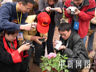 網(wǎng)絡(luò)媒體記者聚焦洛陽(yáng)牡丹。玉樹 攝