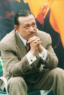 一身老克勒打扮的姜文,從《茉莉花開》拍攝現(xiàn)場忙里偷閑,溜到上影廠小露臺接受采訪,為電影《綠茶》做宣傳。說話中途偶爾接個(gè)電話,紫色吊帶的手機(jī),翻蓋上忽隱忽現(xiàn)一小方卡通粘紙,電話是趙薇打來的,姜文喚她“薇姐”。