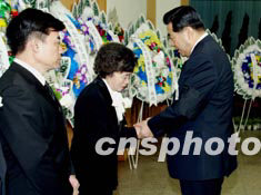 全國政協(xié)主席賈慶林二十一日在北京八寶山,悼念逝世的前臺盟中央主席蔡子民先生,并向蔡先生的親屬表示慰問。作者:鄭萍萍