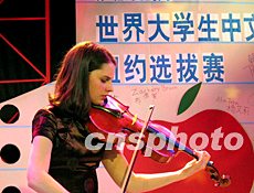 由紐約中國留學(xué)服務(wù)中心、美國僑報(bào)和美國中文電視聯(lián)合舉辦的第二屆“中國橋”世界大學(xué)生中文比賽,四月二十六日在紐約舉行。來自紐約六所大學(xué)的學(xué)生參加了中文演講、中華文化問答和才藝三個(gè)項(xiàng)目的比賽,來自賓州大學(xué)的學(xué)生表演中國舞蹈《蝴蝶》。作者:游江