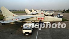 中國海軍航空兵某飛行部隊的國產(chǎn)“飛豹”戰(zhàn)機,今春四月轉(zhuǎn)戰(zhàn)某地整裝待發(fā)。這支飛行部隊剛完成了大機群跨區(qū)機動和黃昏攻擊截擊和高空特技等訓(xùn)練,在新型空艦導(dǎo)彈和空空導(dǎo)彈實射中,命中率均達100%。作者:張全躍