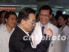 隨后,溫家寶來到廣東省人民醫(yī)院看望了醫(yī)務人員。他說,廣大醫(yī)務工作者在這次抗擊“非典”的斗爭中做出了重大貢獻。他們臨危不懼,舍生忘死,無私奉獻,救死扶傷,表現(xiàn)出高尚的革命情操和人道主義精神。祖國和人民是不會忘記的。他要求各級政府要格外關心醫(yī)務人員的身心健康,要進一步改善他們的工作和生活條件,大力宣傳他們的先進事跡。