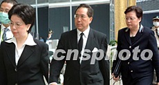 香港立法會(huì)主席范徐麗泰[右]、教育統(tǒng)籌局長(zhǎng)李國(guó)章【中】、衛(wèi)生署署長(zhǎng)陳馮富珍、5月22日前往香港殯儀館吊唁為救治非典型肺炎而殉職的屯門醫(yī)院女醫(yī)生謝婉雯。洪少葵 攝