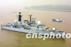 中新社上海五月二十四日電 英國皇家海軍“利物浦號”驅(qū)逐艦在英國海軍司令大衛(wèi)尼爾森的帶領下,今天首次訪問上海。