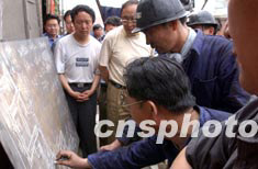 5月28日,發(fā)生透水事故的河南安陽安利煤礦現(xiàn)場,剛剛從井下上來的礦工正在向地面工作人員講述救援工作進度。該煤礦自5月24日透水事故發(fā)生以來,救援工作一直在緊張地進行中。至5月28日上午,搶險工作又向前推進25米,距離出事地點剩下130余米,礦井涌水正常。目前扇風(fēng)筒已接近最前沿施工地點,以保證井下氧氣濃度達到正常水平。作者:慎重