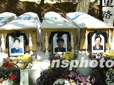 在阿爾及利亞地震中遇難的九名中國員工二十八日下午于阿首都阿爾及爾東郊阿利亞公墓安葬。九名中國員工是在地震中因居住的一棟六層宿舍樓倒塌而遇難的。中新社 圖