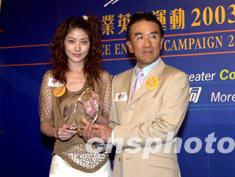歌星陳慧琳6月2日在香港出席“職業(yè)英語(yǔ)運(yùn)動(dòng)2003”記者會(huì)。中新社記者 鄧慶樂(lè)