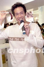 影視紅星陳豪6月5日在香港出席法國(guó)化妝品牌「萊莉雅」專(zhuān)門(mén)店開(kāi)幕儀式,陳豪于店內(nèi)找到合適的染發(fā)色樣。 中新社記者 鄧慶樂(lè)