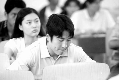 8點50分,考官開始宣講考場紀(jì)律,顯然考生中有祁宏的熟人,他邊點頭打招呼,邊笑嘻嘻地把書包放到較遠(yuǎn)的座椅上。其他考生也先后收好復(fù)習(xí)卷、參考書,迅速安靜了下來?荚噧尚r后結(jié)束,答完考卷的考生們議論紛紛地走出了考場。