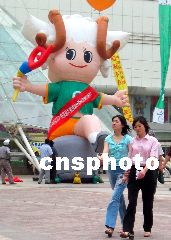 2003年9月,第六屆全國殘疾人運動會將在江蘇南京舉行,近日,殘疾人運動會的吉祥物“羊羊”出現(xiàn)在南京街頭。又又 攝