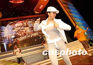 國際級歌手李玟應(yīng)邀出席「2002/2003年度香港賽馬會冠軍人馬獎頒獎典禮」,20日與舞蹈演員彩排節(jié)目。作者: 洪少葵