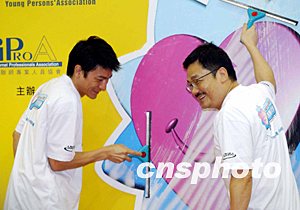 6月28日,香港著名藝人劉德華與漫畫家黃玉郎應(yīng)邀出席擦亮香港大行動-“義”氣青年發(fā)動儀式,為百多名青年義工鼓勵打氣。作者:洪少葵