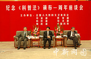 為此,中國(guó)全國(guó)人大教科文衛(wèi)委員會(huì)、中共中央宣傳部、教育部、科技部、司法部、財(cái)政部和中國(guó)科協(xié)二十九日聯(lián)合在北京人民大會(huì)堂舉行座談會(huì),紀(jì)念這一世界首部科普法規(guī)誕生一周年。