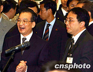六月三十日,國務(wù)院總理溫家寶參觀香港大學(xué)基因中心,并聆聽教授介紹,如何首先找到SARS冠狀病毒。中新社記者 潘索菲 攝