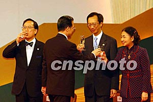 溫家寶與出席人士一同舉杯,祝愿香港明天更加美好、祖國更加繁榮昌盛。