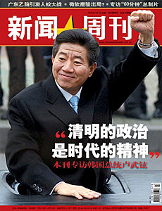 中新網(wǎng)7月2日電 中國《新聞周刊》派記者赴韓國漢城,并專訪韓國總統(tǒng)盧武鉉,于7月7日將出版的新一期雜志中推出封面文章:清明的政治是時(shí)代的精神。