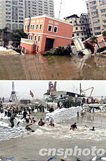 據(jù)悉,從中午開始,搶險人員冒著36攝氏度的高溫,穿著厚厚的工作服,開始加固路面。幾臺鑄漿機在不停地把水泥漿注入中山南路地下,以加固路面地基,增加地面的承載能力。另外,在臨江花園大廈的樓下一側(cè),也有一臺鑄漿機在向大樓的地下注漿。與此同時,上海排水處的潛水隊員準備潛入地下,堵住文廟泵站在地下通往黃浦江的排水口,確保大廈下面的地基不滲水。