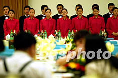為了活躍現(xiàn)場(chǎng)氣氛,旅游局還安排了雜技、民樂(lè)表演,供游客們觀看。據(jù)悉,為了盡快恢復(fù)旅游市場(chǎng),北京市旅游局制定了一系列救市措施,最先到京的1500名境外游客將免費(fèi)享受一次國(guó)宴就是其中之一。據(jù)介紹,宴請(qǐng)境外游客的做法曾經(jīng)在接待慶祝中日邦交正;30周年到京的日本團(tuán)時(shí)采用過(guò),不少客人將此視為一種殊榮。