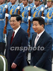 胡錦濤說(shuō),中韓在朝核問(wèn)題上的立場(chǎng)有許多共同點(diǎn),在爭(zhēng)取和平解決朝核問(wèn)題的過(guò)程中,中韓有必要加強(qiáng)相互協(xié)調(diào)與溝通,發(fā)揮各自的影響,使北京會(huì)談開(kāi)始的對(duì)話進(jìn)程繼續(xù)下去。