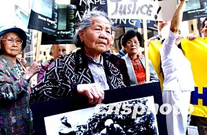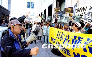 七月十八日,美國(guó)舊金山日本侵華浩劫紀(jì)念館舉行“為正義而呼喚!為史實(shí)而抗議!”的示威游行,百余名華人前往日本駐舊金山領(lǐng)事館遞交抗議書(shū),要求日本承認(rèn)“對(duì)華侵略”,真心悔改,“向中國(guó)人民謝罪道歉”,對(duì)受害者“作出公平的賠償”。作者:陳鋼