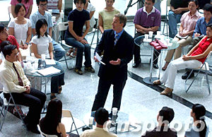 眼下已是暑假,可清華大學(xué)舜德樓一樓大廳卻熱鬧異常,今天上午,一場(chǎng)別開生面的圓桌座談會(huì)正在這里舉行,座談會(huì)的主角是正在中國訪問的英國首相布萊爾與百名清華學(xué)子。