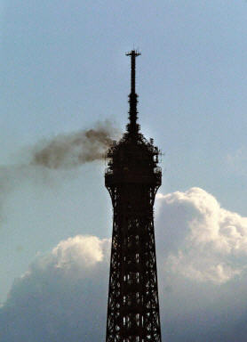 中新網(wǎng)7月23日電 據(jù)法新社報道,位于巴黎市塞納河南岸的埃菲爾鐵塔22日傍晚頂層突然起火,從電視畫面上可以看到滾滾濃煙像巨浪一樣涌向天空。