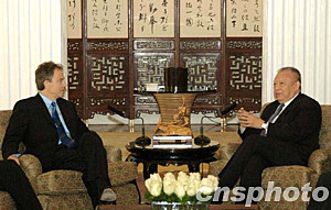 中新網(wǎng)7月23日電 香港行政長官董建華今早在香港禮賓府與到訪的英國首相布萊爾會面。