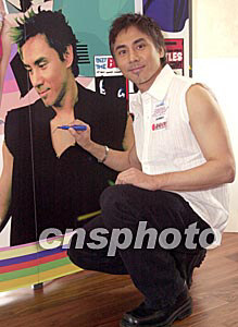 歌星葉文輝7月24日在香港出席新城電臺(tái)廣播劇《都市情色》記者會(huì)。葉文輝在宣傳海報(bào)上簽名。作者:鄧慶樂(lè)