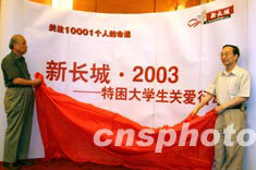 八月三日,由中國(guó)扶貧基金會(huì)主辦的“新長(zhǎng)城2003特困大學(xué)生關(guān)愛行動(dòng)”在北京人民大會(huì)堂舉行啟動(dòng)儀式,此次行動(dòng)將有一萬(wàn)余名特困大學(xué)生得到捐助。中新社記者:盛佳鵬