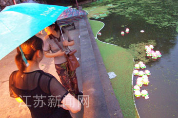 2003年8月3日晚至4日凌晨,南京莫愁湖公園推出“迎七夕莫愁湖放燈游園晚會(huì)”,數(shù)千游客冒雨與會(huì)。細(xì)雨中,對(duì)對(duì)情侶相依相偎,更添溫馨。