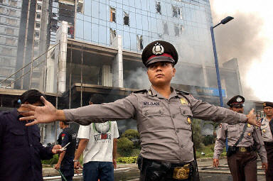 印尼首都雅加達南部的中心商業(yè)區(qū)附近的一家飯店發(fā)生劇烈爆炸。周圍幾幢建筑也受到爆炸沖擊。目擊者說至少有四具尸體被抬出現(xiàn)場。警方確認已有5人在爆炸中死亡,另有5人重傷。