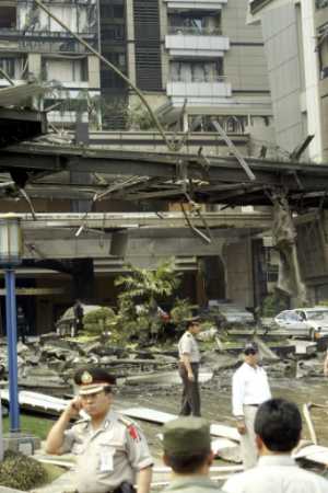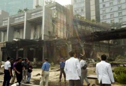 8月5日,印尼首都雅加達南部的中心商業(yè)區(qū)萬豪酒店發(fā)生劇烈爆炸。周圍幾幢建筑也受到爆炸沖擊。據(jù)印尼警方稱,到目前為止至少有8人在爆炸中死亡,另有103人重傷。(春風)