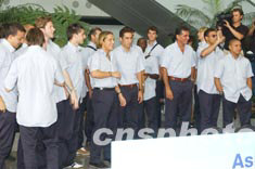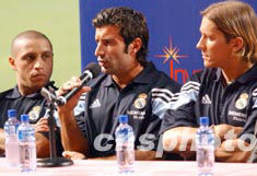 著名球星菲戈、齊達(dá)內(nèi)、羅納爾多、貝克漢姆、卡洛斯、勞爾等,向熱情的球迷揮手致意。他們?cè)诖筇猛A袅思s十分鐘,然后乘車前往下塌的灣仔君悅酒店。酒店外亦有大批球迷守候。