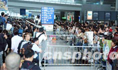 今天下午二時(shí)四十分許,驟雨初歇;蜀R隊(duì)員乘飛機(jī)從東京抵達(dá)香港國(guó)際機(jī)場(chǎng)。二千多名球迷帶著歡迎橫額和鮮花,在機(jī)場(chǎng)接機(jī)大堂迎候。當(dāng)一眾球星步出通道時(shí),球迷發(fā)出歡呼和尖叫聲,閃光燈閃個(gè)不停。