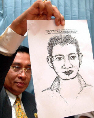 印尼警察總長巴赫蒂亞爾說,警方已經(jīng)勾畫出購買肇事車輛和執(zhí)行爆炸任務(wù)的疑犯的頭像。他透露,兩個(gè)沒有表明身份的人從一名車主那里購買了那輛藍(lán)色吉普車,雖然他們抹去了汽車和發(fā)動(dòng)機(jī)的號(hào)碼,但警方還是查出了車的來源。
