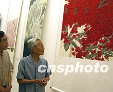 中國美術(shù)館重新開館半月以來,許多著名畫家來此參觀和交流。圖為繪畫大師吳冠中觀看館藏精品展。中新社記者:張勤