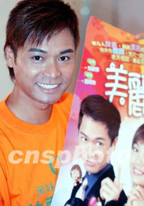 香港無線電視小生郭晉安向觀眾贈送劇目海報。