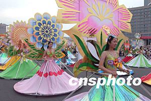 第十三屆青島國際啤酒節(jié)舉行盛大的狂歡巡游活動,由青島旅游學校學生裝扮的名貴花卉方隊構成一幅姹紫嫣紅的美麗畫卷。中新社記者:張煒