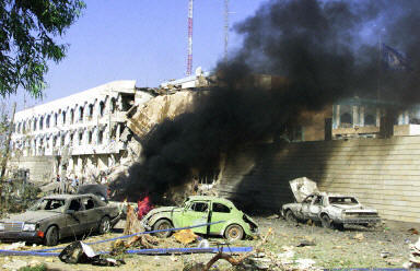 當?shù)貢r間8月19日16:40左右(北京時間8月19日20:40左右),設在伊拉克首都巴格達運河酒店的聯(lián)合國辦事機構總部發(fā)生強烈爆炸,造成三人死亡,數(shù)十人受傷。有證據(jù)表明爆炸是汽車炸彈造成的。