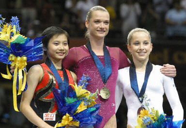 相關(guān)報(bào)道:張楠獲得女子個(gè)人全能銅牌 霍爾金娜蟬聯(lián)金牌 (2003-08-23 10:59:54)