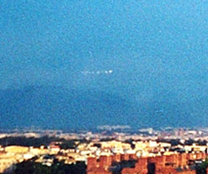 他們上樓后,在火星方位的東南方上下尋找火星蹤跡,由于天色仍亮,找不到火星,但突然在同方位的下方遠(yuǎn)處;大溪鎮(zhèn)后方山區(qū)上空,發(fā)現(xiàn)一排發(fā)著金黃色光彩的橢圓形飛行物緩緩移動(dòng),方向由東南方往西前進(jìn),數(shù)量大約是10余架,有3架好象是帶頭的,一架在最前,后面兩只是上下排列,狀似三角形。帶頭的三架并一度90度轉(zhuǎn)彎消失,約三秒后又突然出現(xiàn)與機(jī)隊(duì)會(huì)合,隨后再整隊(duì)緩緩前進(jìn),消失在云霧中。