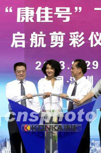 圖:張曼玉出席“康佳號(hào)”客機(jī)啟航儀式