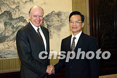 中新網(wǎng)北京9月3日電(記者齊彬)中國(guó)國(guó)務(wù)院總理溫家寶今天下午在中南海紫光閣會(huì)見(jiàn)了到訪的美國(guó)財(cái)政部長(zhǎng)斯諾一行。