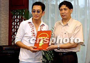 九月十三日,香港演藝界影視紅星吳啟華先生接受由廣州電視臺副臺長頒發(fā)的第十一屆“美在花城”準(zhǔn)決賽評委聘書。作者:劉衛(wèi)勇