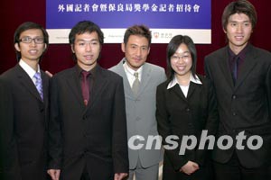 張學(xué)友與四名獲得獎學(xué)金得主于會上合照。作者:鄧慶樂