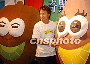 香港歌手方力申,九月二十三日以ZESPRI宣傳大使身份在慶祝會(huì)上與“奇異果卡通形象”在一起。中新社記者:錢興強(qiáng)